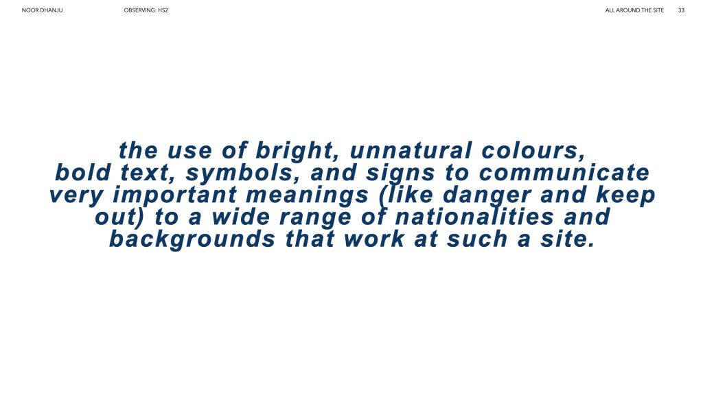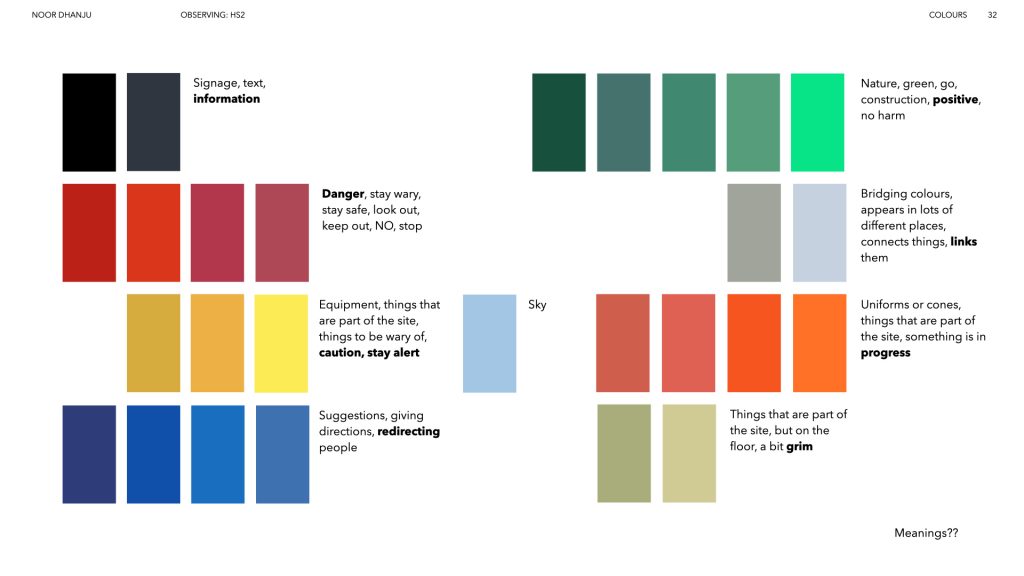 I pivoted my research to look at colours, because the ones present at the site were so unnatural and loud, and they stood out to me. I wanted to explore this further and decipher what they meant to me, as a layman, as these colours and their messaging would be inherently different to me, a layman, versus someone who worked at the site or who has knowledge of construction sites.